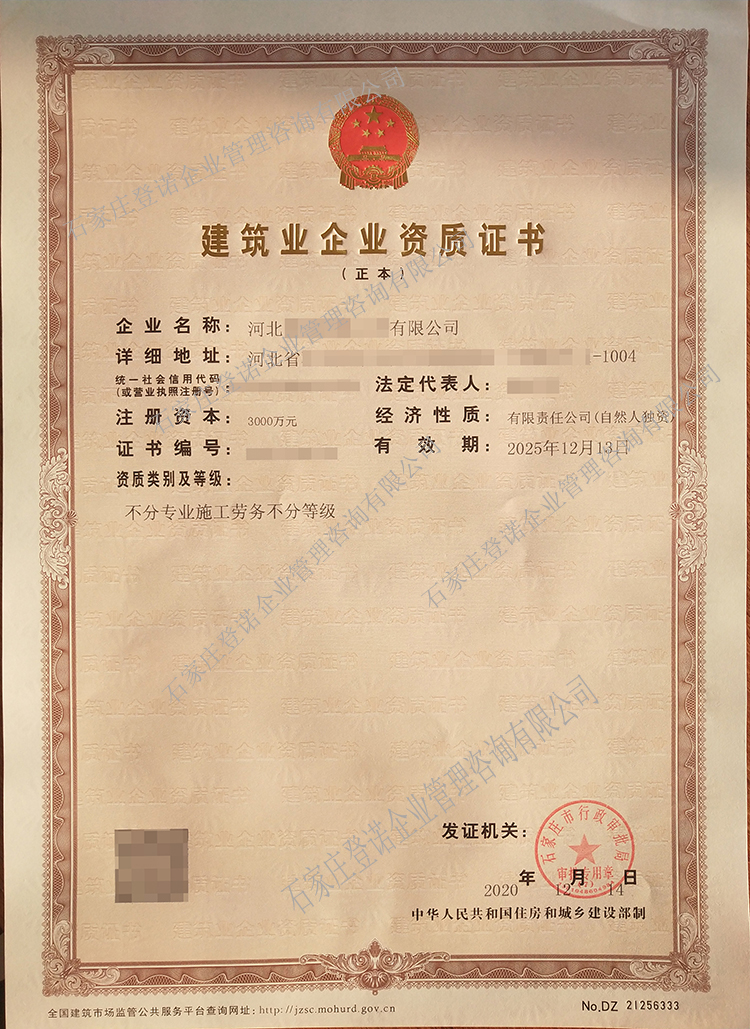不分等級勞務資質辦理成功案例電子版