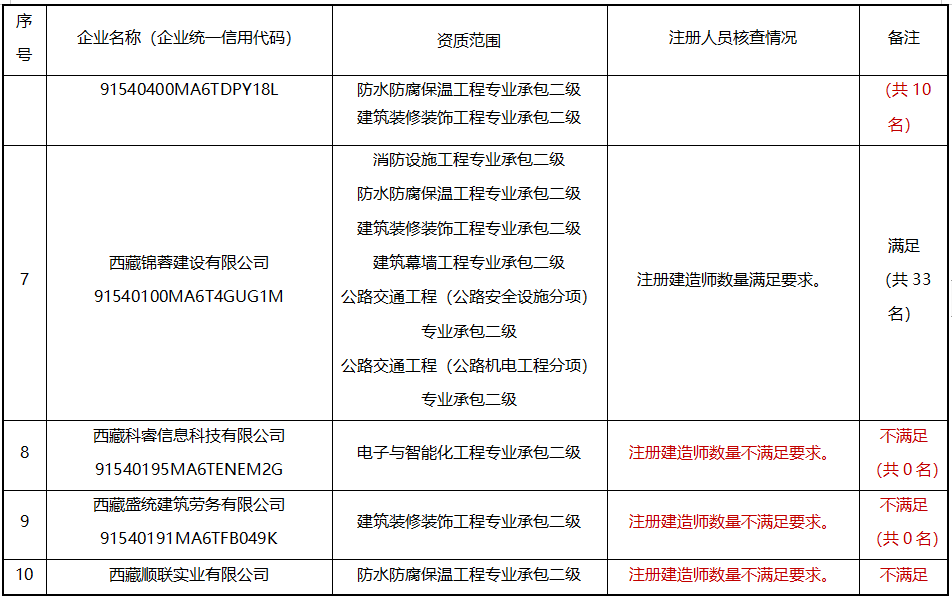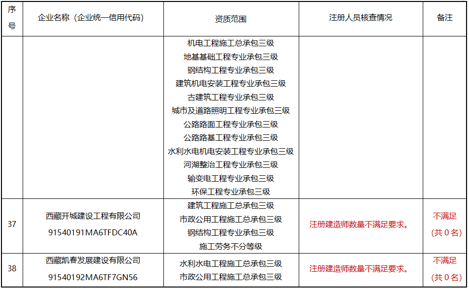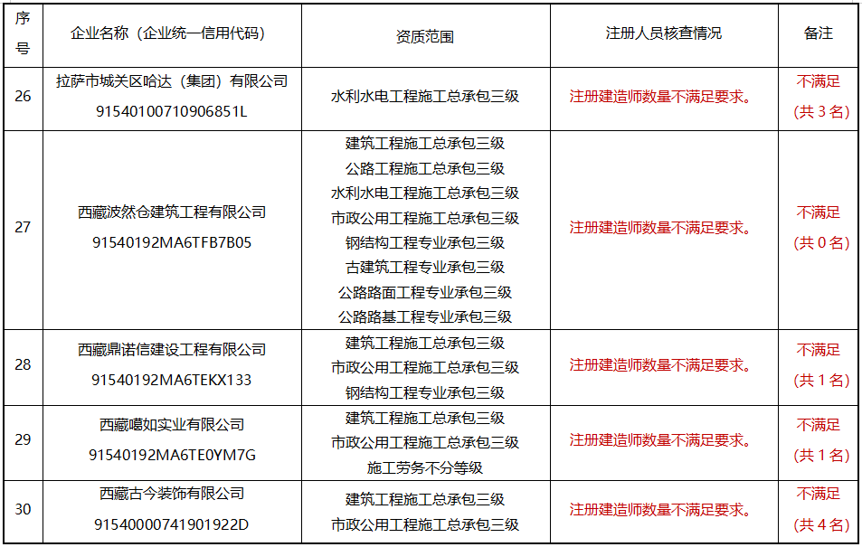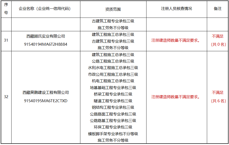 請相關企業高度重視,盡快進行整改,也可即日起通過“西藏自治區建筑市場監管與誠信一體化工作平臺”自行申請注銷相關資質;各地(市)住建主管部門要加大督導力度,加強政策指導,確保按期整改到位。