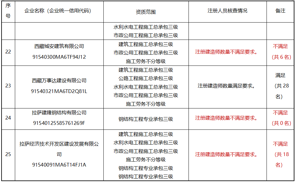 根據《建筑業企業資質管理規定》第二十八條“取得建筑業企業資質證書的企業,應當保持資產、主要人員、技術裝備等方面滿足相應建筑業企業資質標準要求的條件”的規定,現責令相關企業限期改正,整改期限3個月;從即日起相關企業不能承攬新的工程,我區各級住建主管部門不再受理相關企業資質的升級、增項申請;整改期滿(截止9月25日)仍未達到建設工程企業資質標準要求的,我廳將撤回其相應的資質證書并在西藏自治區住房和城鄉建設廳官網站上予以公告。