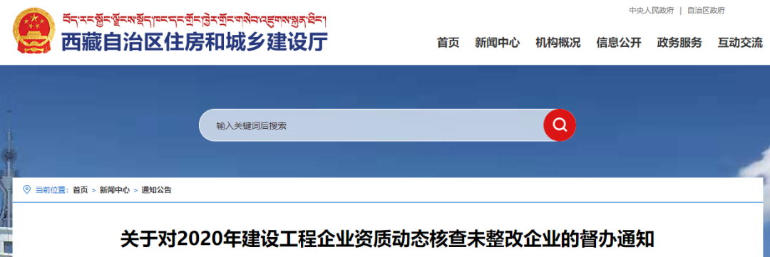近日,西藏自治區住房和城鄉建設廳發布《關于對2020年建設工程企業資質動態核查未整改企業的督辦通知》。