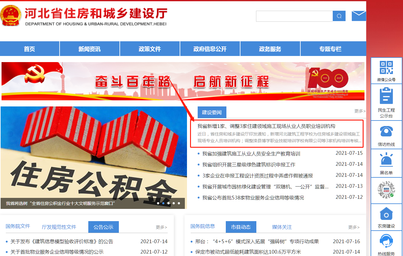 7月16日,也就是今日河北省住房和城鄉建設廳發布:我省新增1家、調整3家住建領域施工現場從業人員職業培訓機構