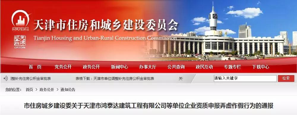經查,天津市鴻泰達建筑工程有限公司等16家單位(名單見附件)在申報資質過程中存在弄虛作假行為。根據《建設工程企業資質申報弄虛作假行為處理辦法》(建市〔2011〕200號),決定對相關單位予以通報批評,不批準其資質申請,自本通報印發之日起1年內不受理上述企業申請相應行政許可。
